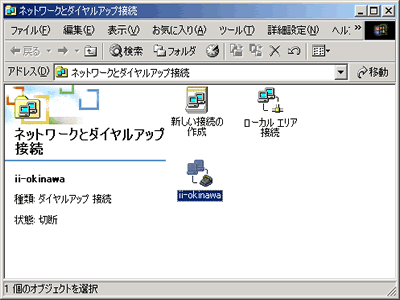 | 作成した接続アイコン(ii-okinawa)が表示されますので、ダブルクリックします。