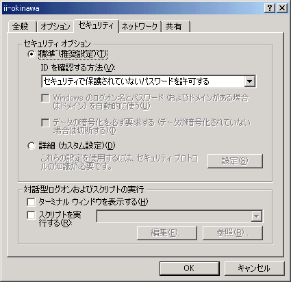 [セキュリティ]タブをクリックし、 正しい設定が行われているか確認します。