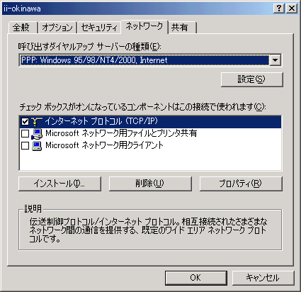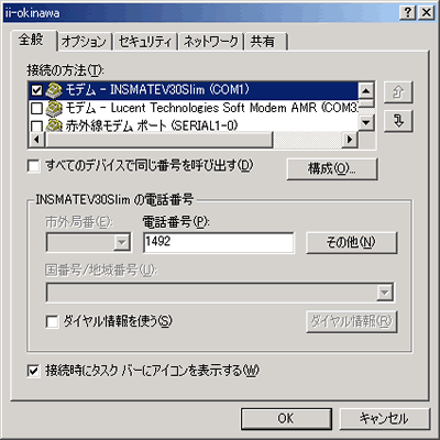 | 設定確認、または変更したい接続アイコン(ii-okinawa)をダブルクリックします。