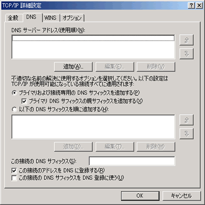 | この接続の DNS サフィックスを DNS 登録に使う |