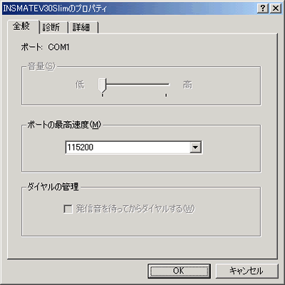 ご利用モデムのプロパティ画面に戻りますので、[OK]ボタンをクリックします。