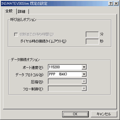ご利用モデムの規定の設定画面が表示されますので、[全般]タブをクリックし、 正しい設定が行われているか確認します。