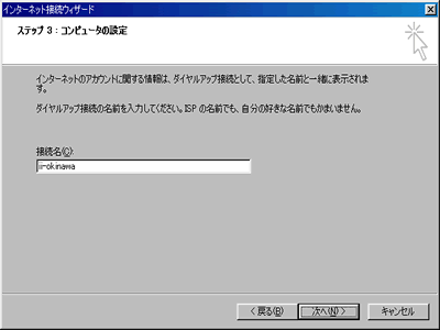 「接続名」に ii-okinawa を入力(※任意の名前で構いません)し、 [次へ]ボタンをクリックします。