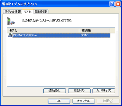 「電話とモデムのオプション」画面に戻るので、[モデム]タブをクリックし、ご利用されるモデムが一覧に表示されることを確認します。