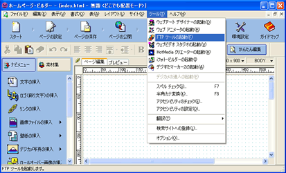 | メニューバーの[ツール]より[FTPツールの起動]をクリックします。
