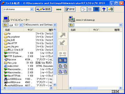 ii-okinawaのFTPサーバに接続されると、右側にサーバ内のディレクトリ一覧が表示されます。