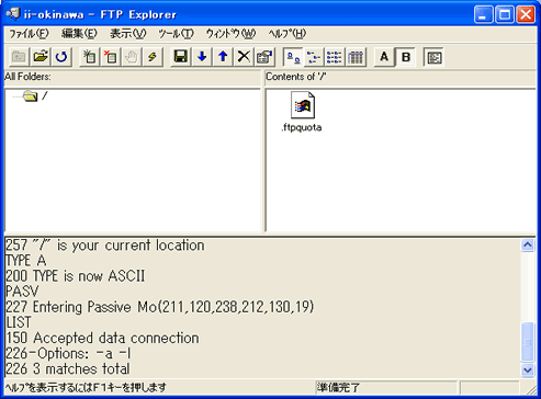ii-okinawaのFTPサーバに接続されると、右側にサーバ内のディレクトリ一覧が表示されます。