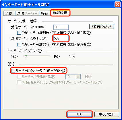 「詳細設定」タブを選択し、各項目を以下のように設定します。