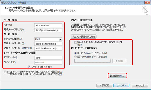 お客様のメールアドレスを入力します。 (例) example@ii-okinawa.ne.jp |