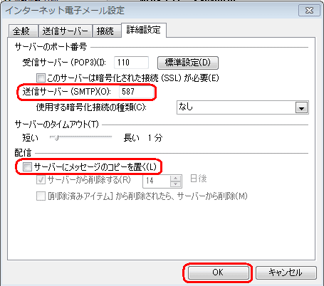 「詳細設定」タブを選択し、各項目を以下のように設定します。