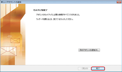 | 「セットアップの完了」画面が表示されたら、【完了】をクリックし、設定完了です。