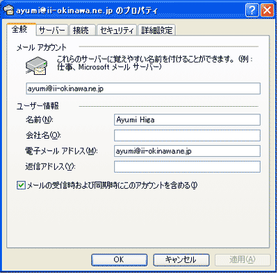 【メールアカウント】@ii-okinawa.ne.jp (例:ayumi@ii-okinawa.ne.jp)
