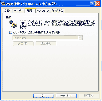 【このアカウントには次の接続を使用する(U)】チェックしない