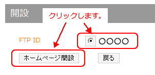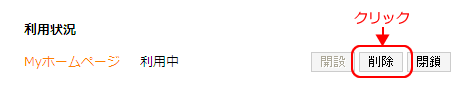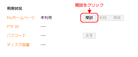 (4) Myホームページ領域の開設 「Myホームページ」設定画面が表示されますので、「開設」ボタンをクリックし、Myホームページ領域を開設してください。 次にお客様のアカウント(FTP ID)を選択し、ホームページ開設をクリックしてください。 利用状況が「利用中」に変わり、Myホームページ領域が開設されます。 (5) ログアウト 画面左側のメニューの「ログアウト」ボタンをクリックすると、ii-okinawaコントロールパネルからログアウトします。 以上でMyホームページ領域の開設は完了です。 コンテンツファイルの一括削除Webサーバ上のすべてのコンテンツファイルを一括削除するには、コントロールパネル「Myホームページ」より、「削除」をクリックします。 Myホームページ領域の閉鎖Myホームページ領域を閉鎖するには、コントロールパネル「Myホームページ」より、「削除」をクリックします。 ホームページの公開についてコンテンツファイルのアップロード ファイル転送ソフト(FTPソフト)等を使用し、お客様がご用意したコンテンツファイルをWebサーバへアップロードを行ってください。 アクセス制限方法 ベーシック認証によるアクセス制御をご利用の場合、.htaccessファイル の AuthUserFile の絶対パスには次のとおり記述していただきますようお願い致します。