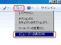 メニューバーが表示されていない場合は、画面上部のメニューボタンをクリックし、『メニューバーの表示』をクリックします。
