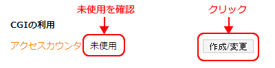 「アクセスカウンタ」項目が「未使用」と表示されていることを確認し、「作成/変更」ボタンをクリックしてください。