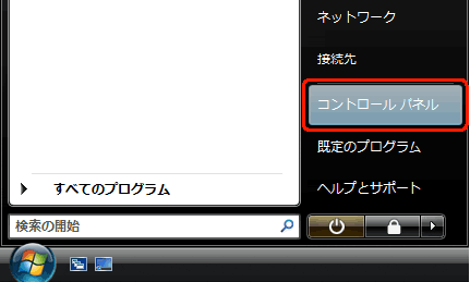 デスクトップ左下の【スタート】より、「コントロールパネル」を選択します。