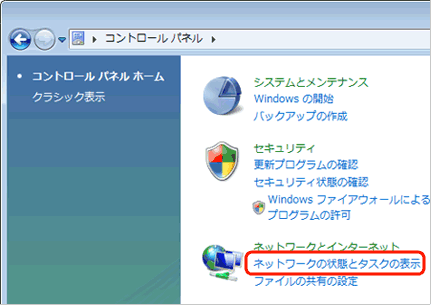 コントロールパネルより、「ネットワークの状態とタスクの表示」 をクリックします。