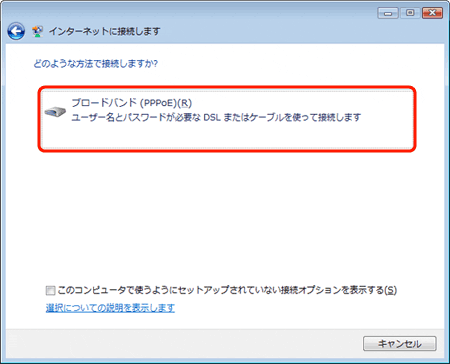 「どのような方法で接続しますか?」の画面が表示されます。