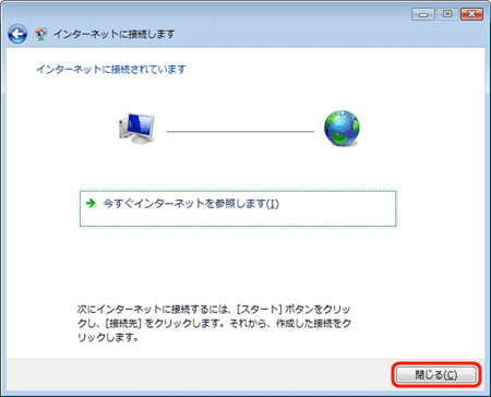 接続完了の画面が表示されたら、「閉じる」をクリックします。 設定完了です。