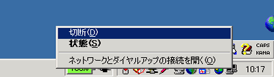 接続を切断する場合には、タスクバーに表示されている接続中であることを示す状態アイコンを右クリック