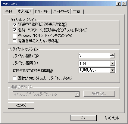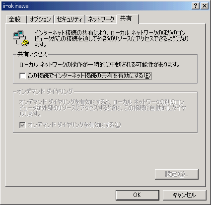 | 設定確認、または変更したい接続アイコン(ii-okinawa)をダブルクリックします。