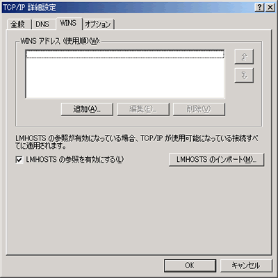 [WINS]タブをクリックし、 正しい設定が行われているか確認します。