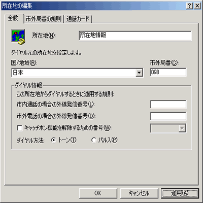 | 2.電話とモデムのオプション [ダイヤル情報] |