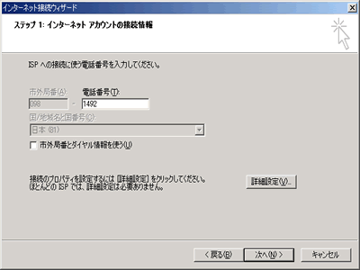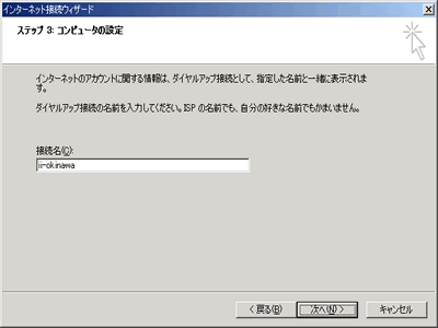| 「インターネットにダイヤルアップ接続をする」にチェックを入れて、[次へ]ボタンをクリックします。