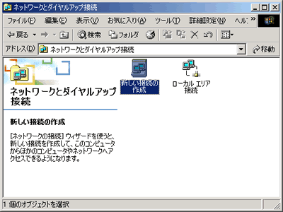 | [スタート] → [設定] → [コントロールパネル]を開き、「ネットワークとダイヤルアップ接続」アイコンをダブルクリックします。