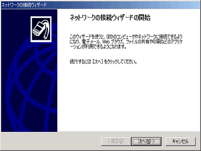『ネットワーク接続ウィザード』が起動します。 [次へ]ボタンをクリックします。