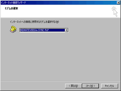 | 「モデムの選択」画面が表示されますので、ご利用のTAを選択して[次へ]ボタンをクリックします。