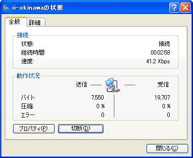 または、接続アイコンをダブルクリックし、接続状態のダイアログボックスが表示されたら [切断] ボタンをクリックします。