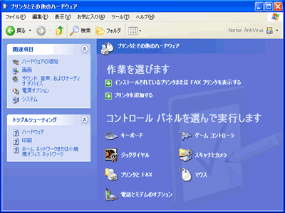 | [スタート] → [コントロールパネル]を開き、「プリンタとその他のハードウェア」アイコンをクリックします。
