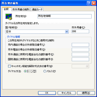 | 3.電話とモデムのオプション 【ダイヤル情報】 |