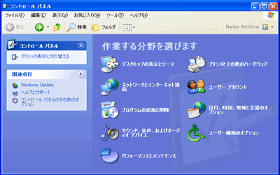 | [スタート] → [コントロールパネル]を開き、「ネットワークとインターネット接続」アイコンをクリックします。