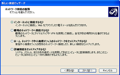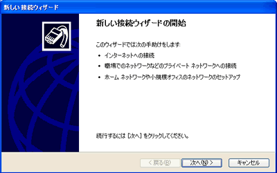 「新しい接続ウィザード」が起動します。 [次へ]ボタンをクリックします。
