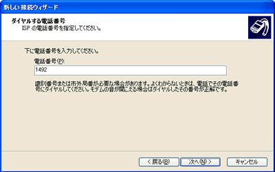 「ダイヤルする電話番号」画面に那覇AP 「1492」を入力し、[次へ]ボタンをクリックします。