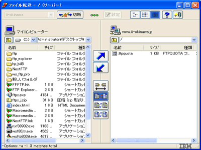 ii-okinawaのFTPサーバに接続されると、右側にサーバ内のディレクトリ一覧が表示されます。