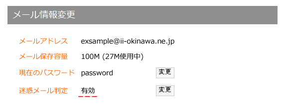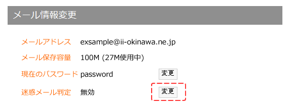 (3) メール情報変更画面迷惑メール設定の右側にある【変更】ボタンをクリックします。