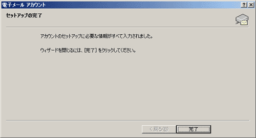 | 「完了」ボタンをクリックし、電子メールアカウントの作成を終了します。