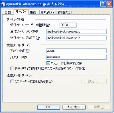 【メールアカウント】@ii-okinawa.ne.jp (例:ayumi@ii-okinawa.ne.jp)