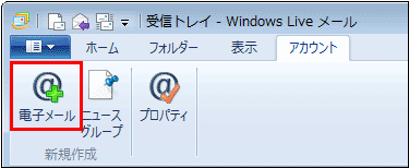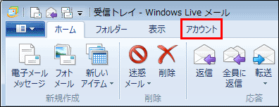 Windows Live メール 2011 を起動し、【アカウント】をクリックします。