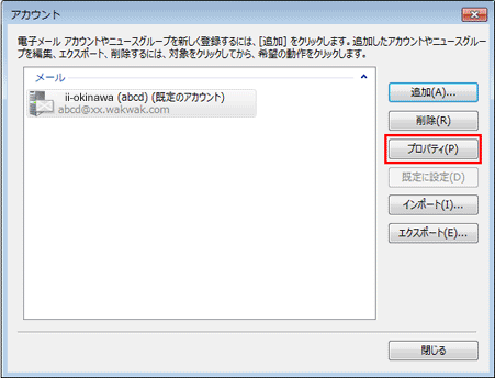 | 追加されたアカウントを選択し、【プロパティ】をクリックします。