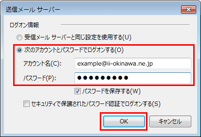 お客様のメールアドレスを入力します。 (例)example@ii-okinawa.ne.jp |
