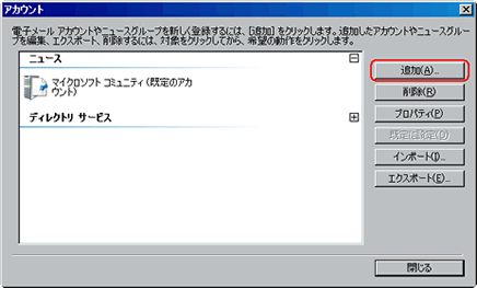 | アカウント画面より、【追加】ボタンをクリックします。