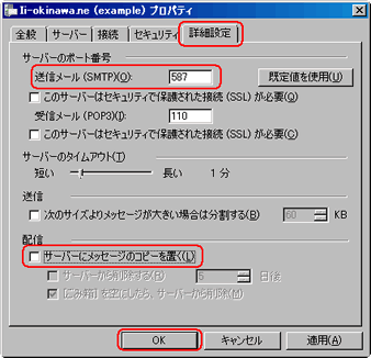 「サーバーにメッセージのコピーを置く」 はチェックしません。 |