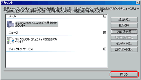 追加されたアカウントを選択し、【プロパティ】ボタンをクリックします。